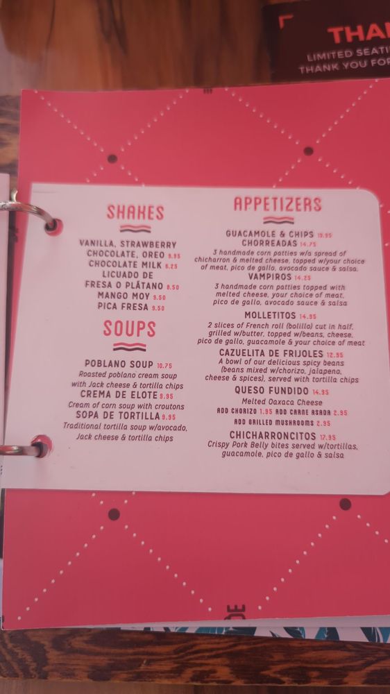 3 Handmade corn patties with a spread of chicharron & melted cheese, topped with your choice of meat, pico de gallo, avocado sauce & salsa